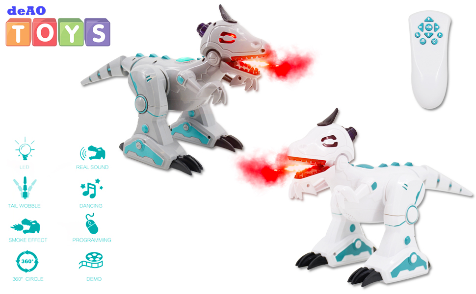 Deao Rc Intelligent Dinosaur Robot With Smoke Effect Lights And Sounds Infrared Remote Control Electronic T Rex Toy Amazon De Toys